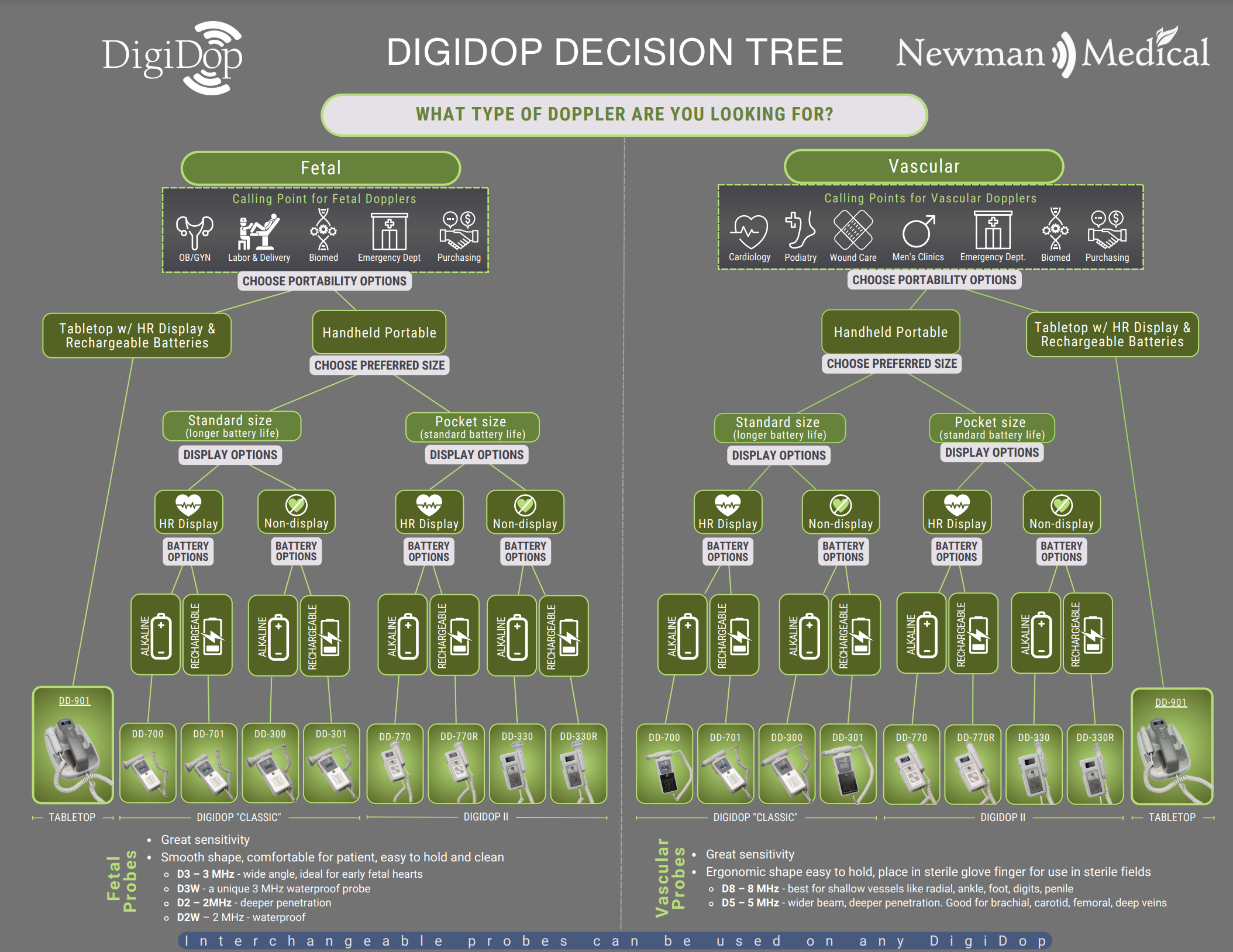 The team at Newman Medical is very experienced in the Vascular Systems and Doppler business – some of them going back to the introduction of the very first Dopplers and some of the first cost-effective physiologic vascular testing systems. Newman Medical dopplers are designed and manufactured in the Denver, Colorado area. DigiDop Fetal Dopplers are highly sensitive and reliable devices used for monitoring fetal heartbeats. The DigiDop fetal Doppler comes in handheld and tabletop options and features interchangeable probes for versatility. Newman Medical offers an industry-best 5-year warranty covering all parts, labor and accidental breakage.